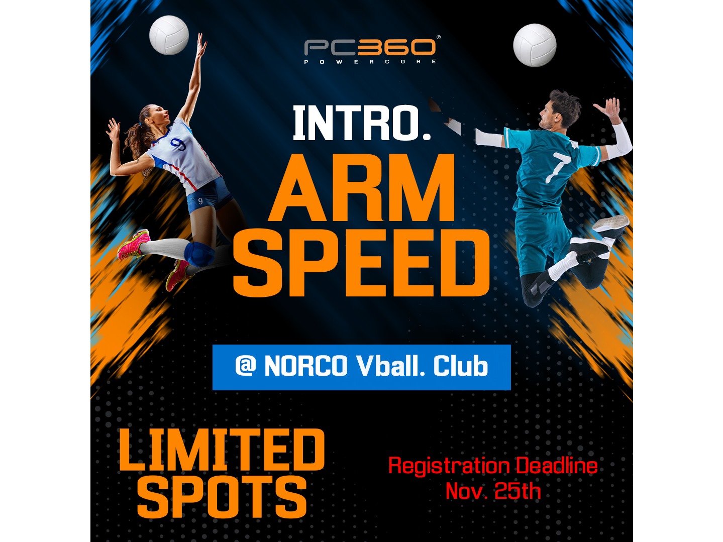 Train to hit harder, increase arm speed, and reduce injury risk through proven Powercore 360 training methods. Program is held at NORCO Volleyball Club, for NORCO Players only and combines on-court coaching with live Zoom guidance from certified Powercore 360 Performance Coach.